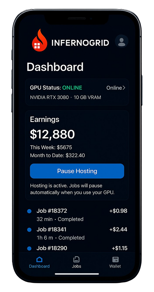 InfernoGrid is a next-generation GPU-sharing marketplace that transforms idle hardware into real earning power. By securely connecting everyday devices, gaming PCs, workstations, and even enterprise servers to a global on-demand compute network, InfernoGrid gives anyone the ability to monetize unused GPU capacity while giving AI developers instant, affordable access to the power they need. Simple to join, secure to run, and built for the explosive growth of artificial intelligence, InfernoGrid is redefining how the world accesses and distributes compute.